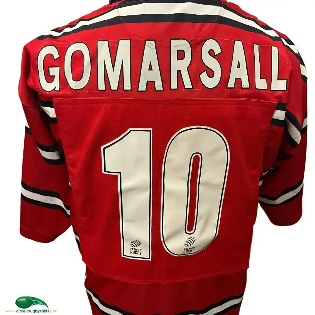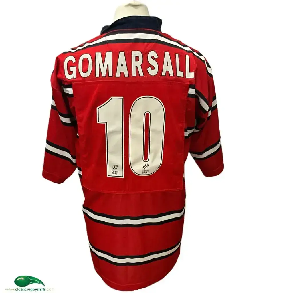 DETAILS - Rare shirt believed to bear match worn by England International Andy Gomarsall during the season when the club came 3rd in the Premiership. They then went on to win the Zurich Championship final beating Bristol Shoguns 28-23.